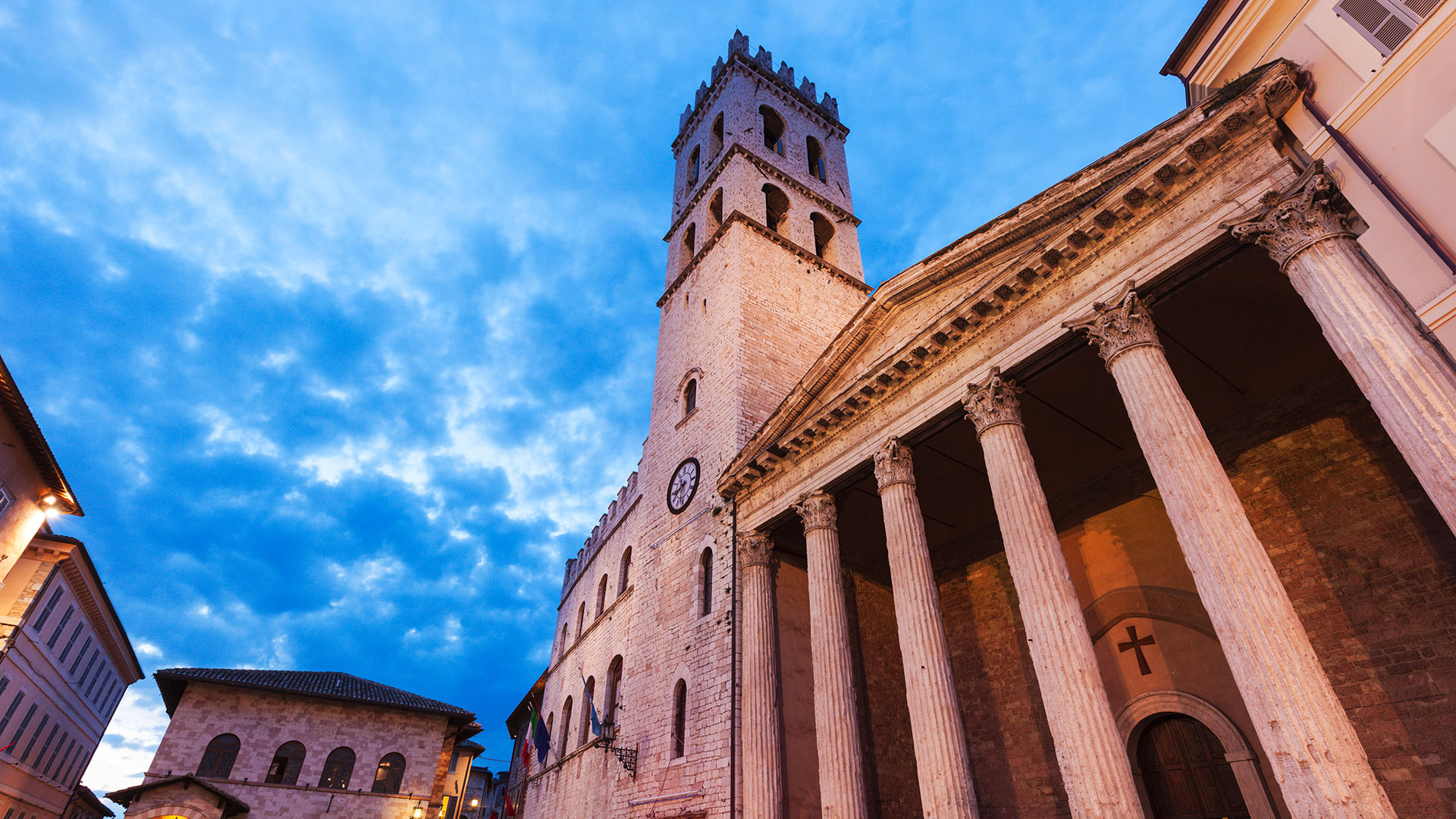 Comprende: il romano Tempio di Minerva – il Palazzo del Capitano del Popolo (sec. XIII), fiancheggiato dalla Torre del Popolo,simbolo di libertà e di autonomia di Assisi – Palazzo dei Priori (sec. XIV), oggi sede municipale, da sempre dimora di autorità.
