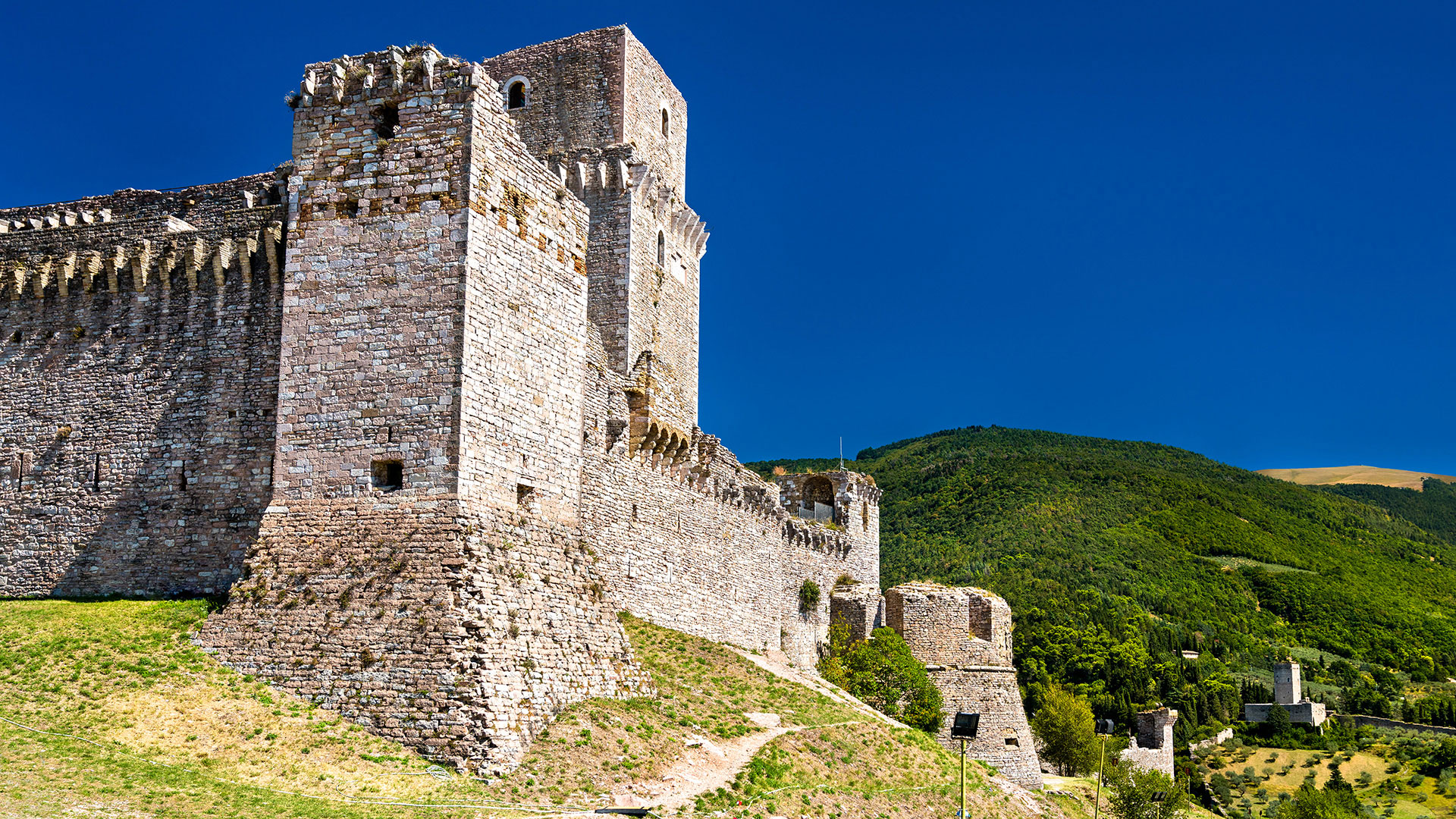 Situata alla sommità del colle che sovrasta Assisi da cui si gode uno stupendo panorama, la Rocca Maggiore si erge in un luogo considerato, sin dai secoli più antichi, sacro e vitale per la difesa dell’antica città.
